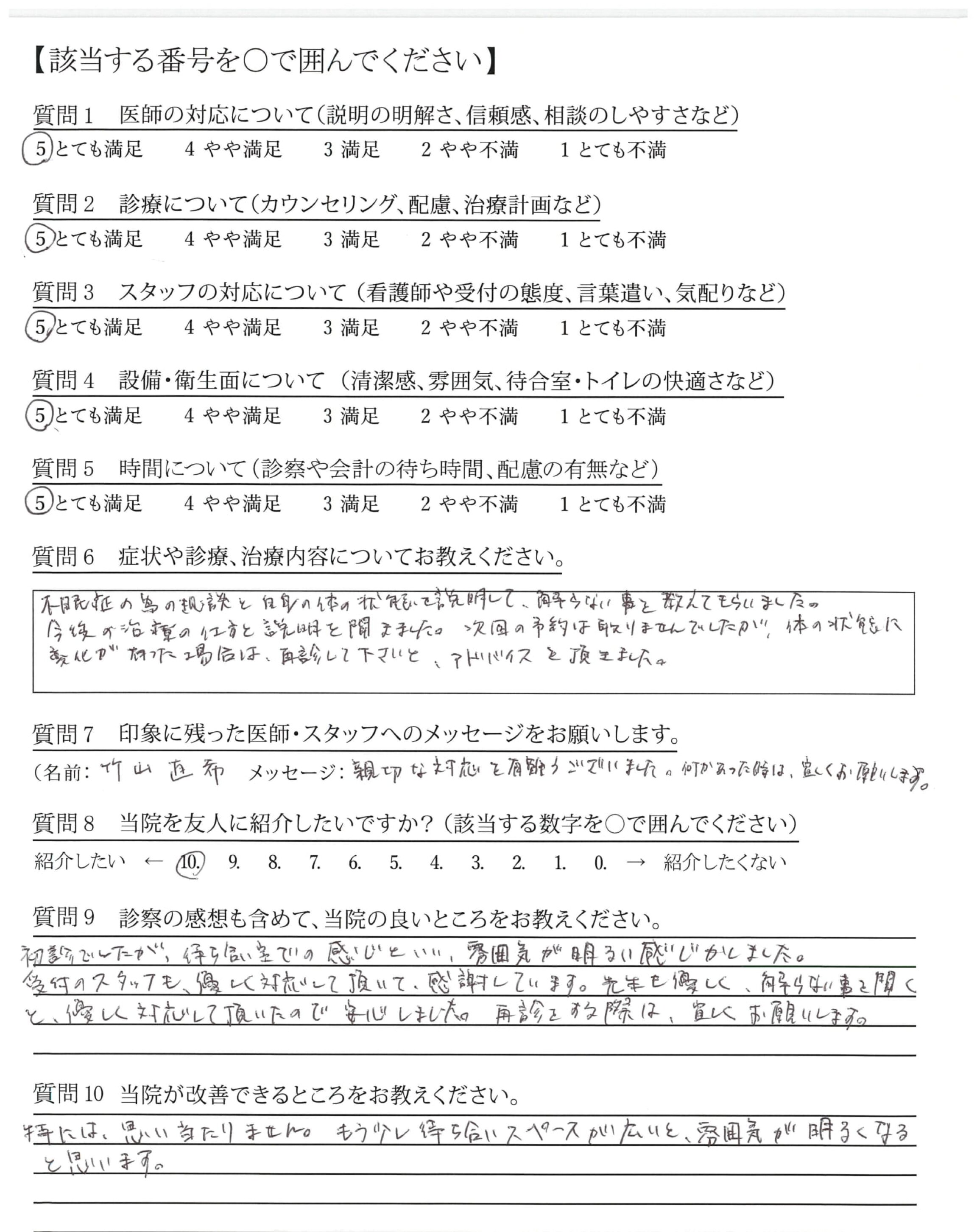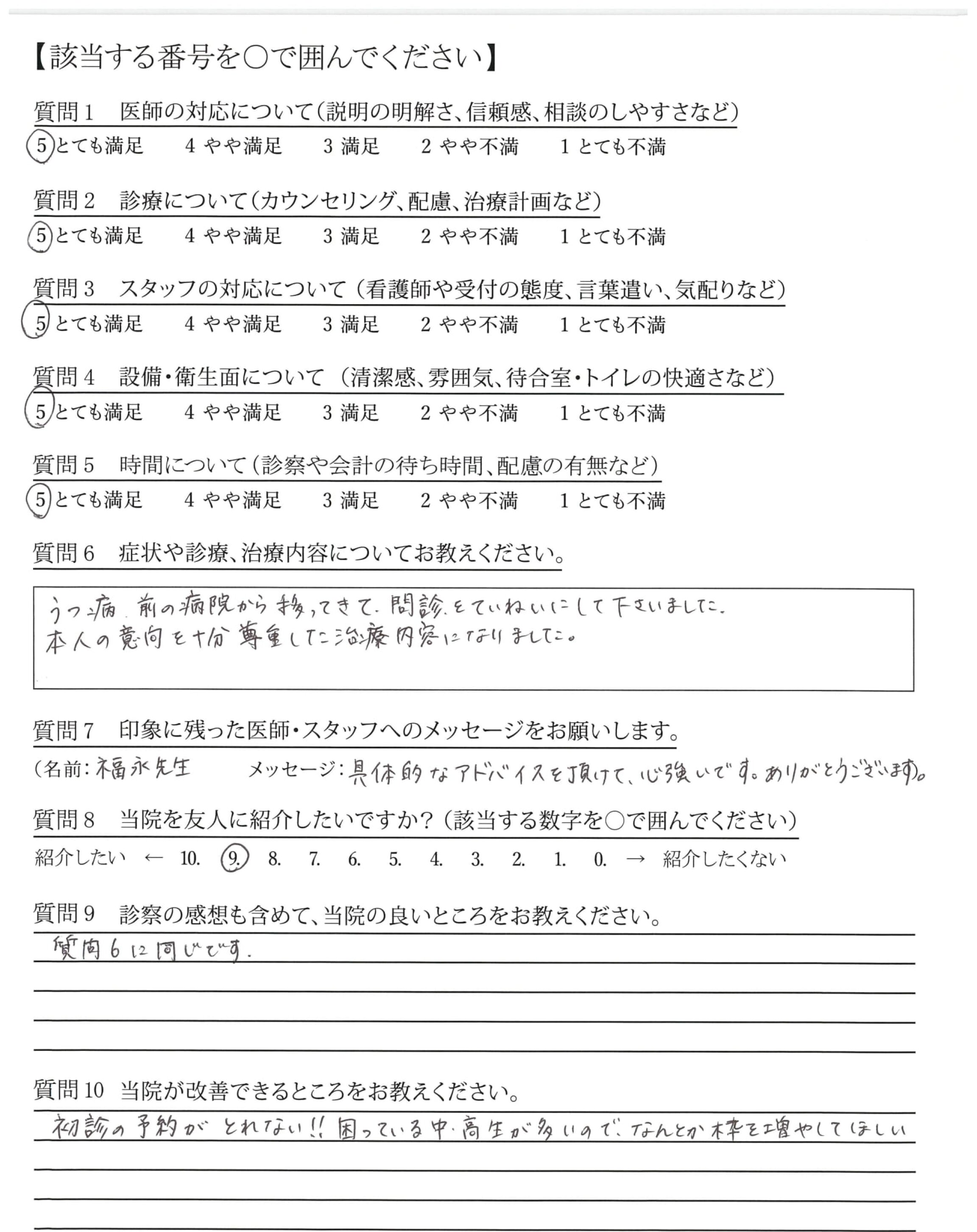 前の病院から移ってきて、問診をていねいにして下さいました。本人の意思を十分に尊重した治療内容になりました。